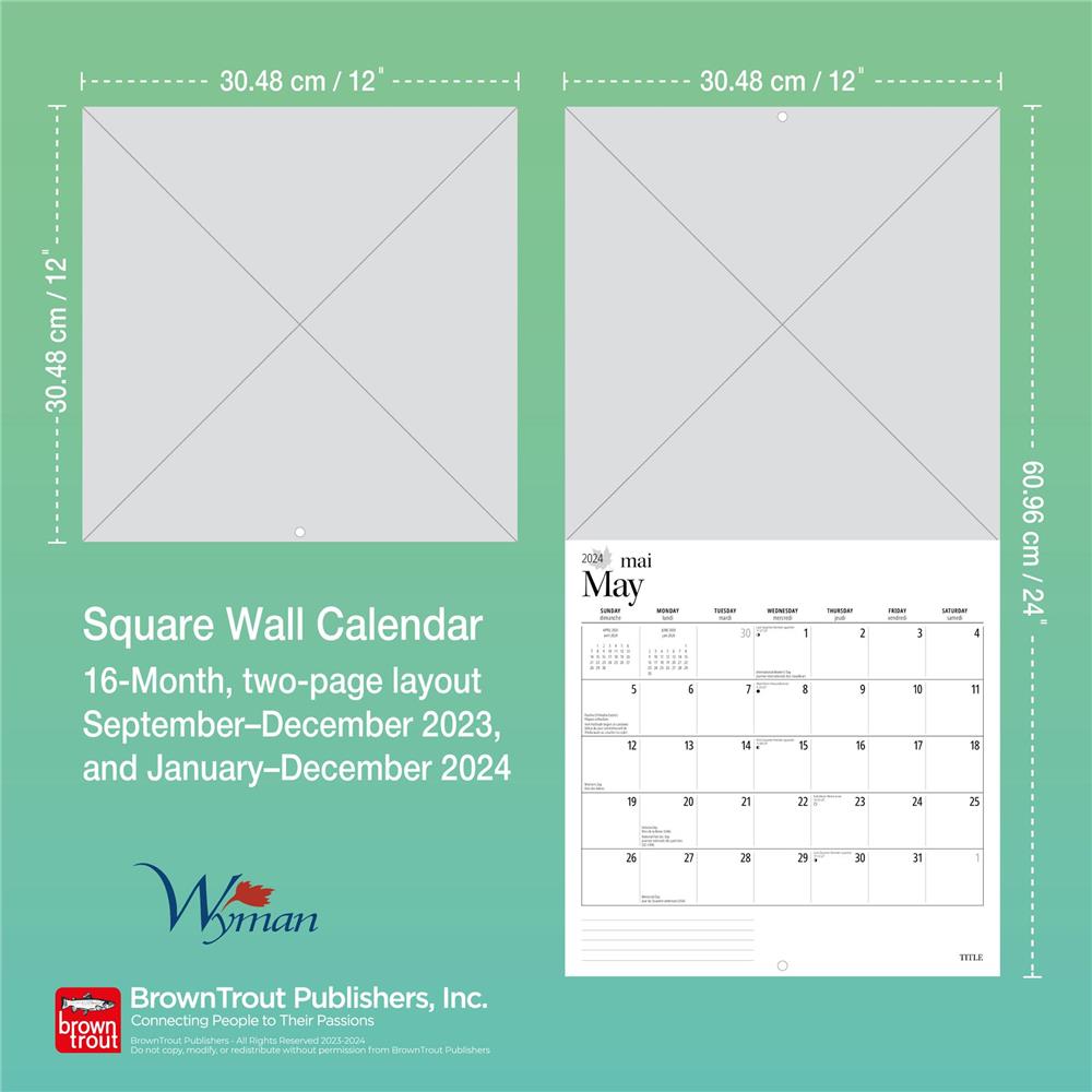 9781525611636 Quebec 2024 Bilingual Wall Calendar Wyman Publishing