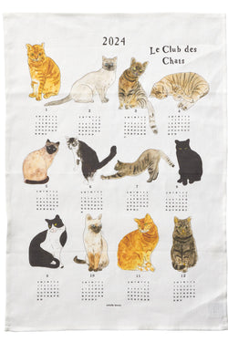 2024 Fabric Calendar Tea Towel Le Club des Chats | Stitch and Tickle